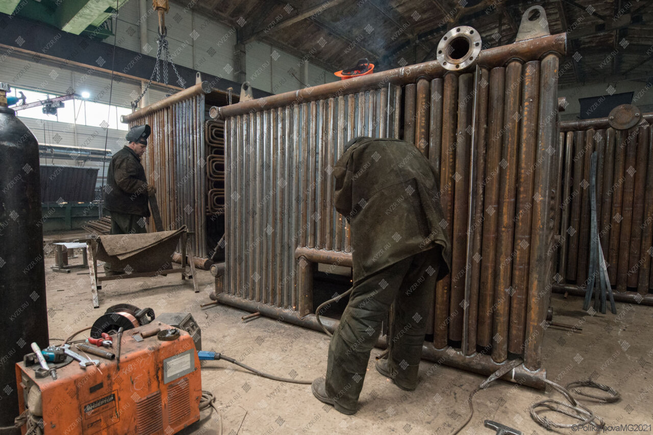 Все водогрейные котлы 1 1 МВт нашего производства - стальные, горизонтальные, водотрубные, прямоточные и компактные. Трубная часть котельного блока выполняется из труб различных диаметров, материал труб сталь 10 и 20. Блок снаружи обваривается стальной охлаждаемой полосой, поэтому в наших котлах исключена возможность задымления котельного зала. Снаружи на каркас из профильной трубы и швеллера крепится утеплитель и декоративная обшивка из полимерного листа. В обшивке предусмотрены лючки для очистки поверхностей нагрева.