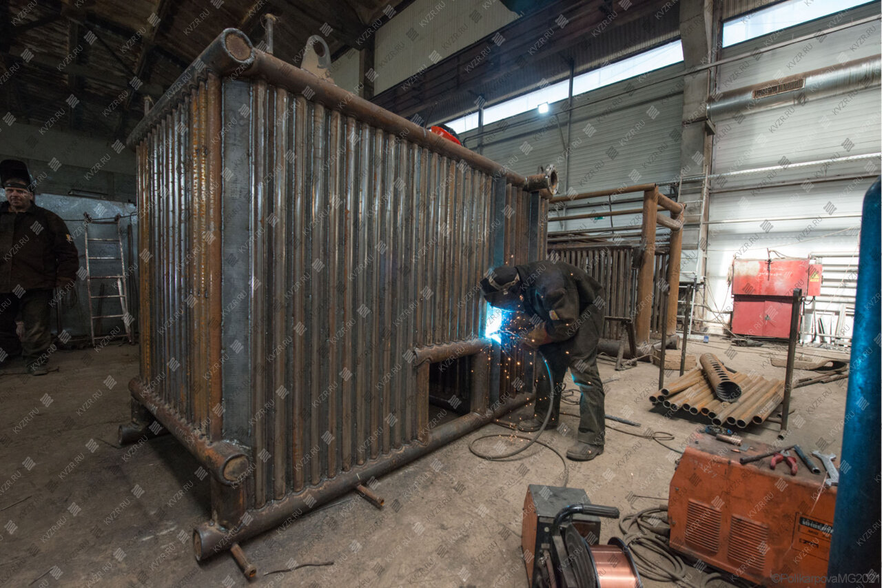 Все водогрейные котлы 2 2 МВт нашего производства - стальные, горизонтальные, водотрубные, прямоточные и компактные. Трубная часть котельного блока выполняется из труб различных диаметров, материал труб сталь 10 и 22. Блок снаружи обваривается стальной охлаждаемой полосой, поэтому в наших котлах исключена возможность задымления котельного зала. Снаружи на каркас из профильной трубы и швеллера крепится утеплитель и декоративная обшивка из полимерного листа. В обшивке предусмотрены лючки для очистки поверхностей нагрева.
