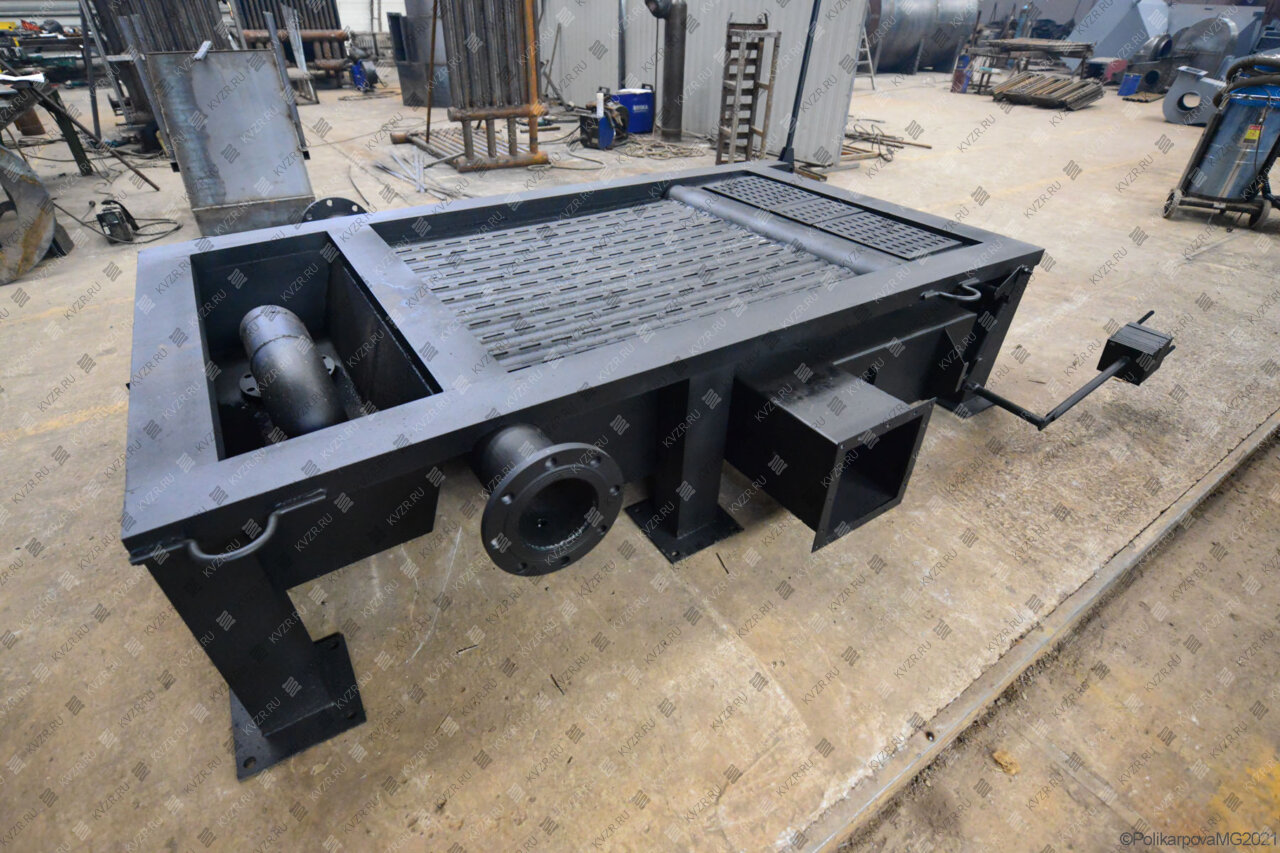Котлы с РПК комплектуются запорной арматурой, приборами КИП, вентилятором поддува. Дымосос подбирается индивидуально, отдельно на котел или на группу, в зависимости от вида топлива. В случае необходимости очистки дымовых газов за котлы КВм устанавливаются с золоуловителями ЗУ. Дымовые газы после золоуловителя поступают в газоходы котельной и далее в дымовую трубу.